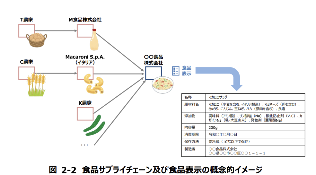 経済産業省は「ソフトウェア管理手法等導入に向けたガイドライン」において、SBOMを「スーパーなどで販売されている食品の裏面に記載されている『原材料名』のようなもの」と例えています。