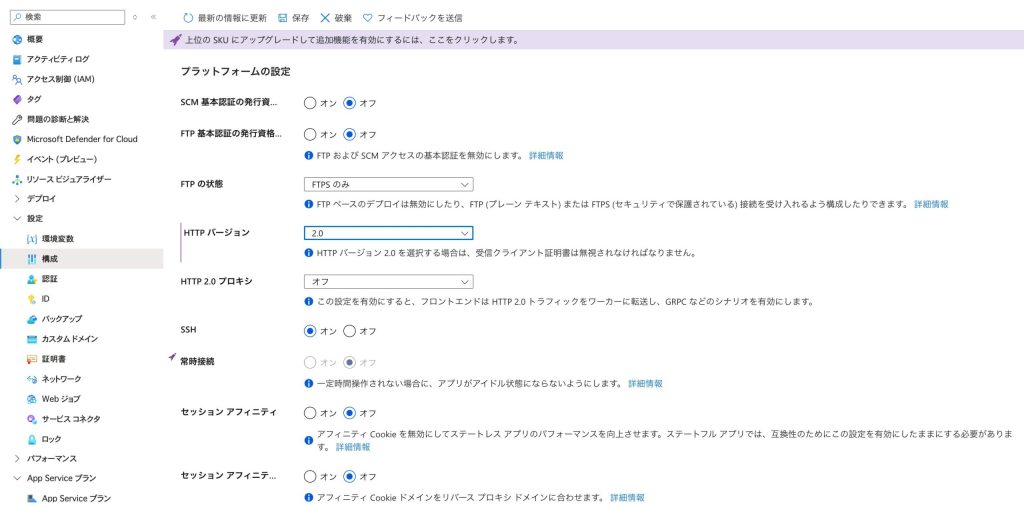 App ServiceでのHTTPバージョン指定の設定