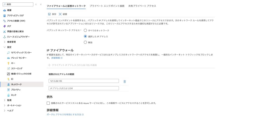 Azure AI Searchのパブリックアクセス制限設定手順