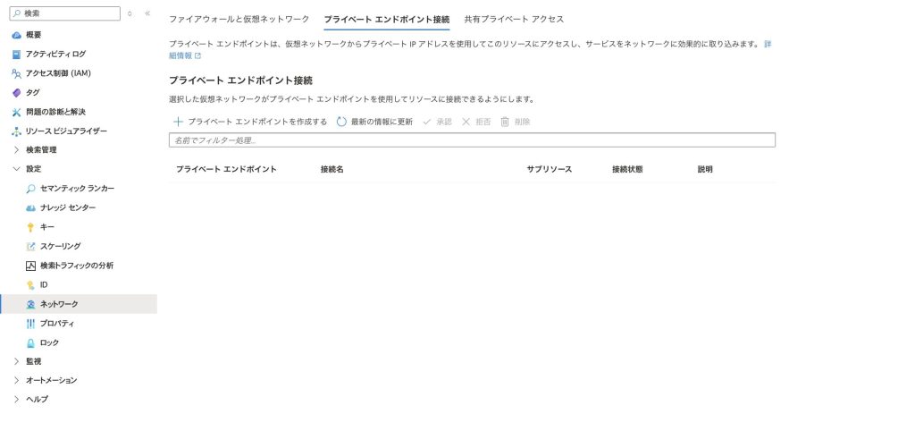 - Azure AI Searchサービスの「ネットワーク」設定に移動