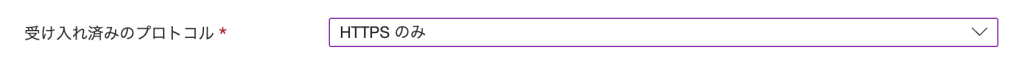 - 「受け入れ済みのプロトコル」を「HTTPSのみ」に設定する