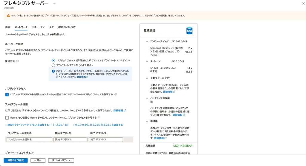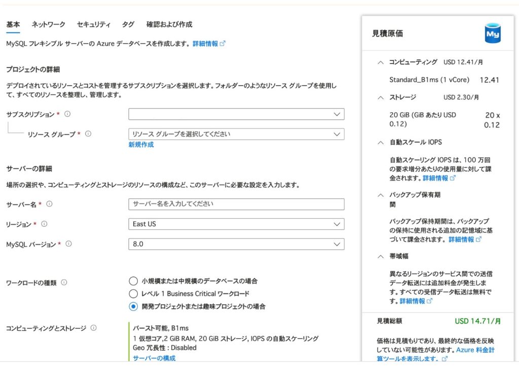 - MySQL Flexible Serverの作成