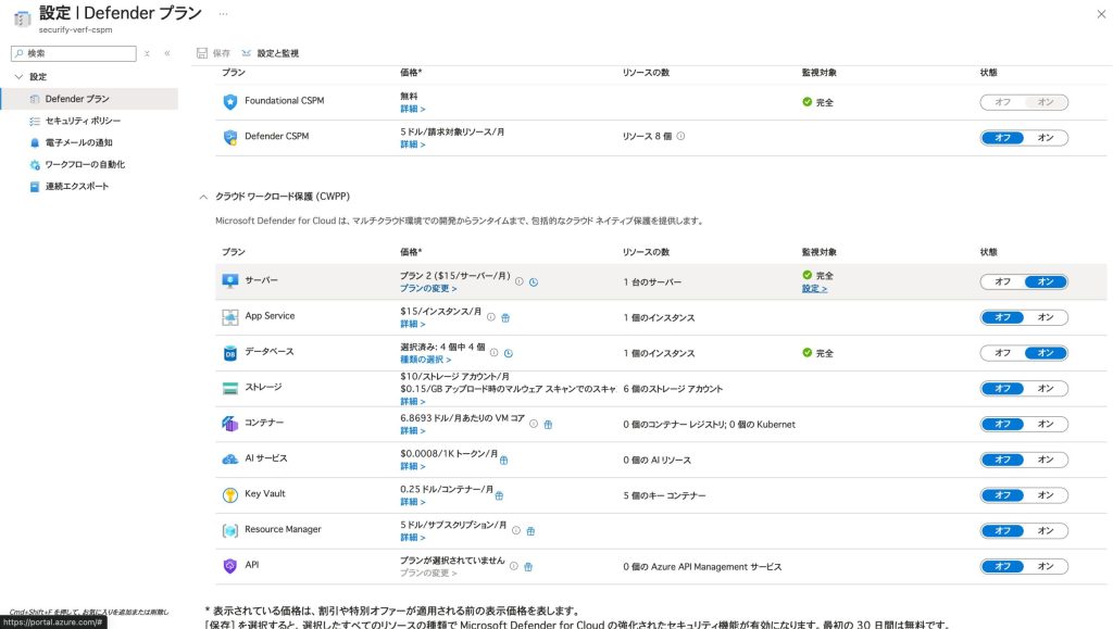 - または、「クラウドセキュリティ態勢管理 (CSPM)」プランを有効にすることもできます