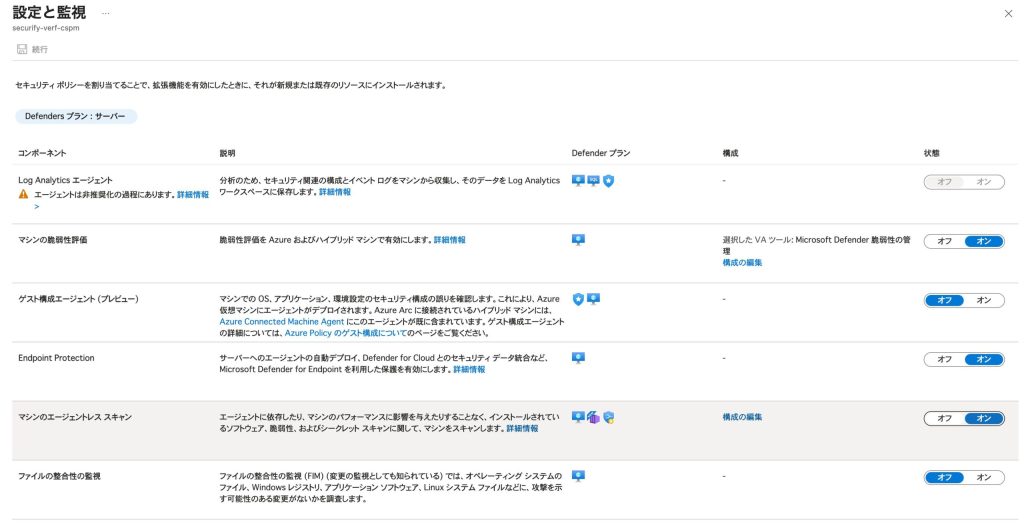 Microsoft Defender for Cloud「マシンに対するエージェントレススキャン」コンポーネント有効化設定手順