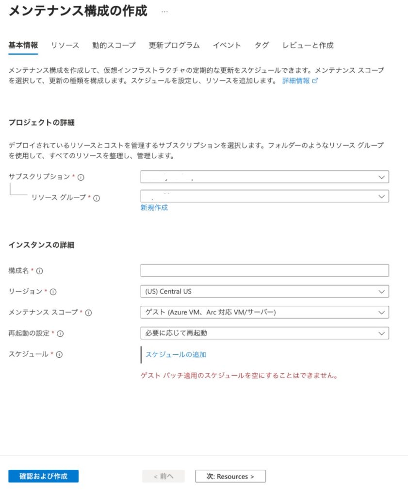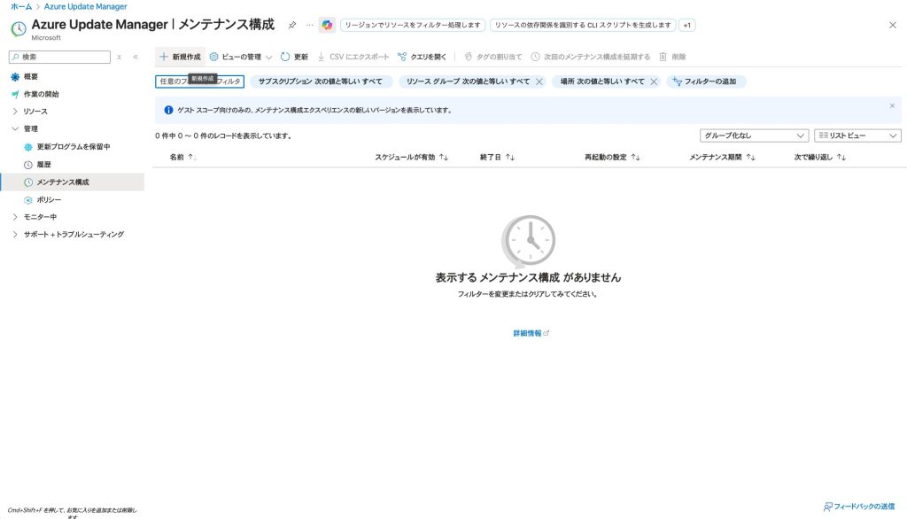 - Azure Update Manager > 「メンテナンス構成」