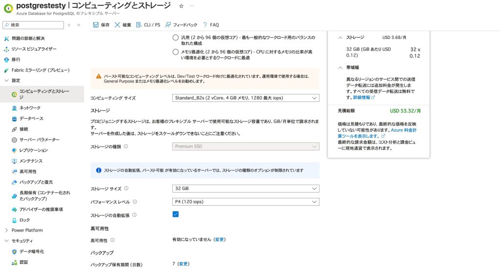 Azure PostgreSQLサーバーのストレージ自動拡張の有効化設定手順