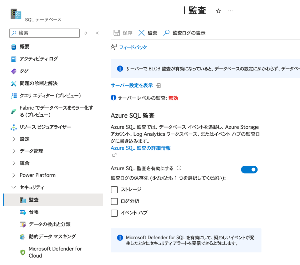 この記事では、Azure SQL Databaseで監査設定が無効になっている場合のリスクと対策を解説します。