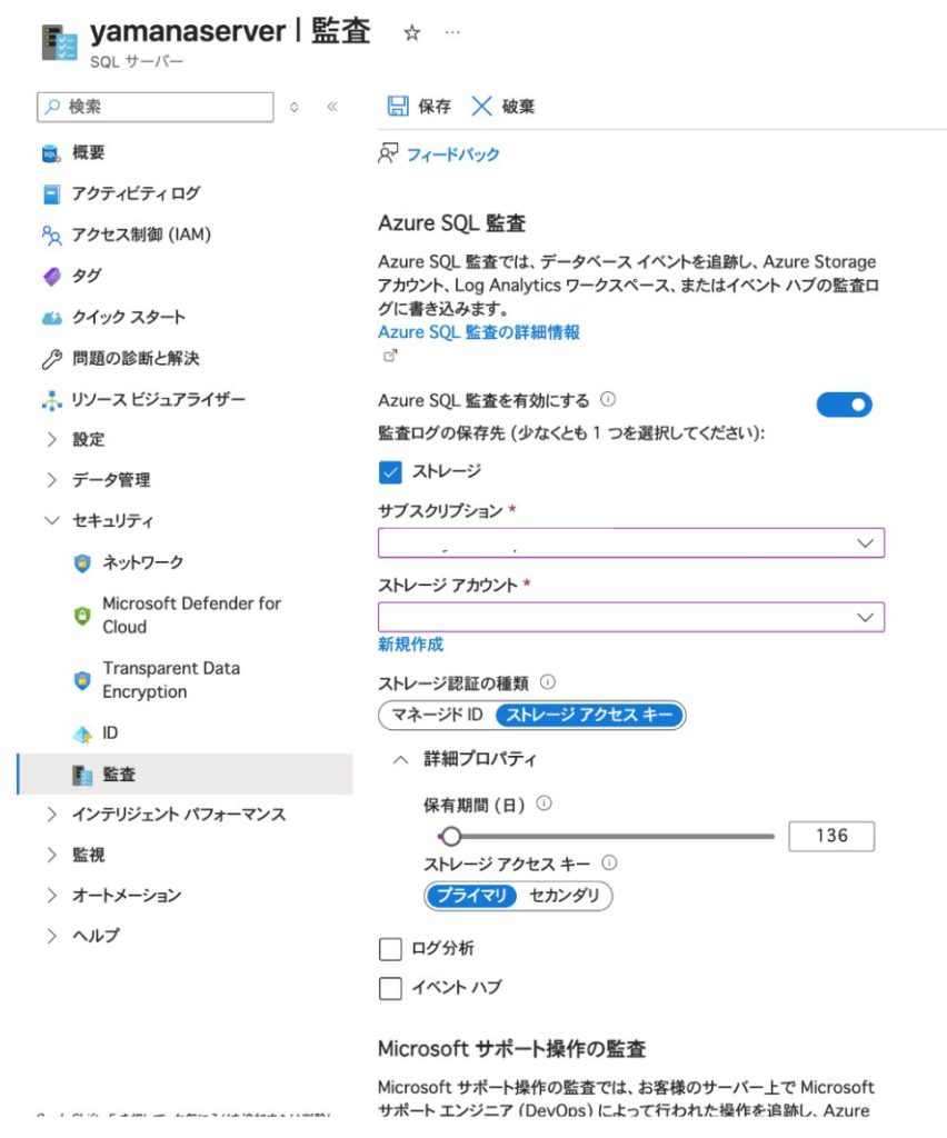 Azure SQL Serverで監査ログの保持期間を90日以上に設定する手順