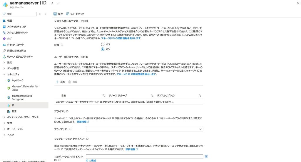 手順1: SQL Serverのマネージドアイデンティを有効化