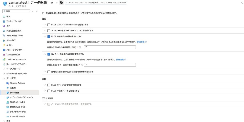 Azure Blob Storage 論理削除設定について