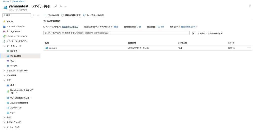 - ストレージアカウント → ファイル共有 → 対象の共有を選択