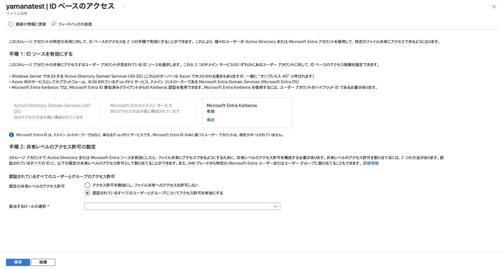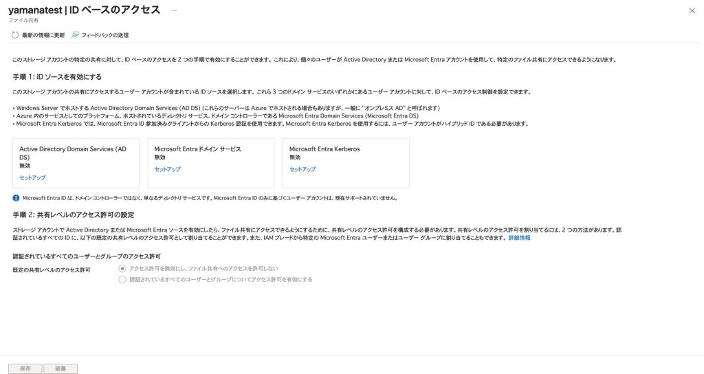 Azure コンソールを使用して、Azure FilesのSMBアクセスにIDベース認証を設定します。
