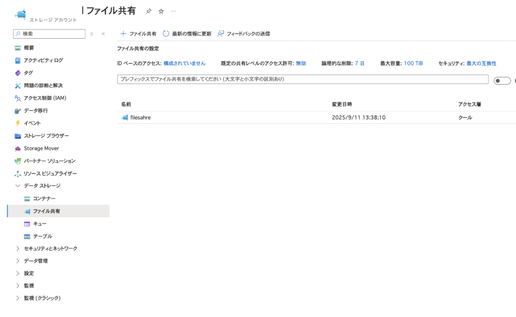 - ストレージアカウント管理者権限を持つアカウントでログイン