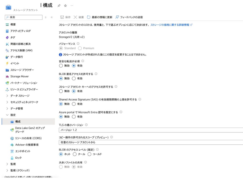 Azureストレージアカウントの共有キーアクセスを無効化する設定手順