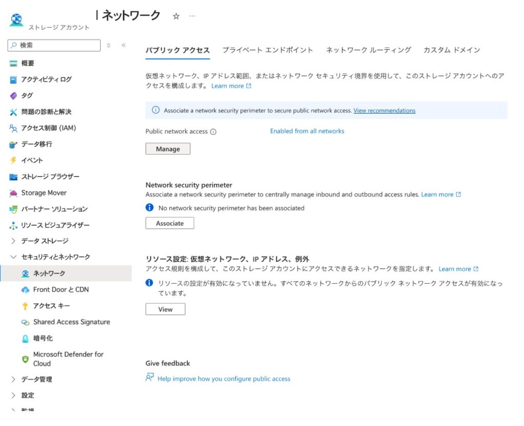 - 「信頼されたMicrosoftサービスによるこのストレージアカウントへのアクセスを許可する」(強く推奨)