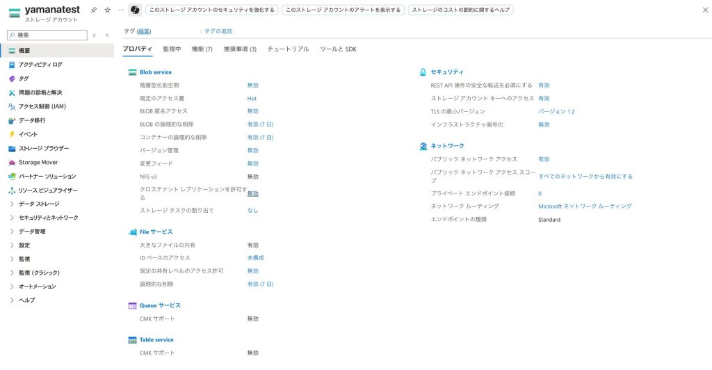 - 推奨: 「BLOB の匿名アクセスを許可する」もオフに設定