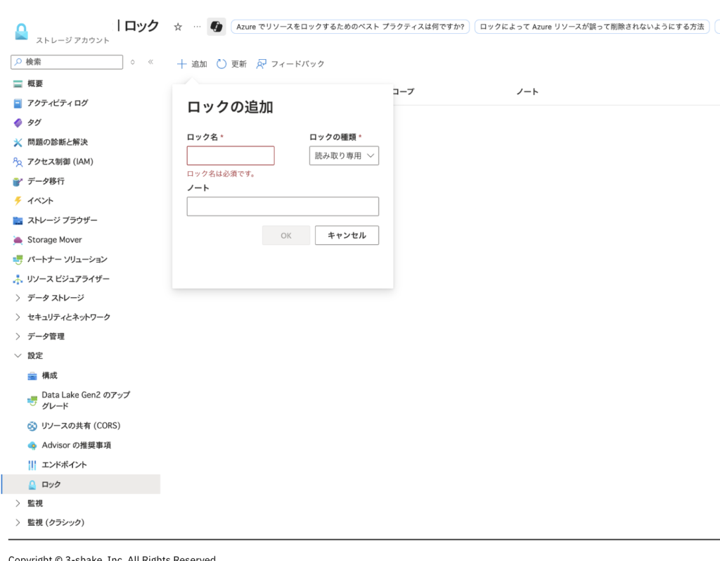 Azure Storage Account削除ロック(Resource Lock)の設定について