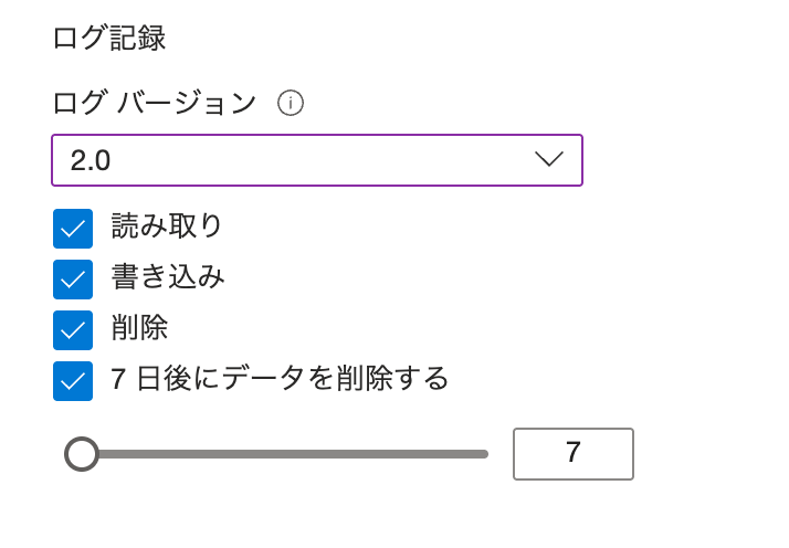 - 新規ストレージアカウントのデフォルトは7日