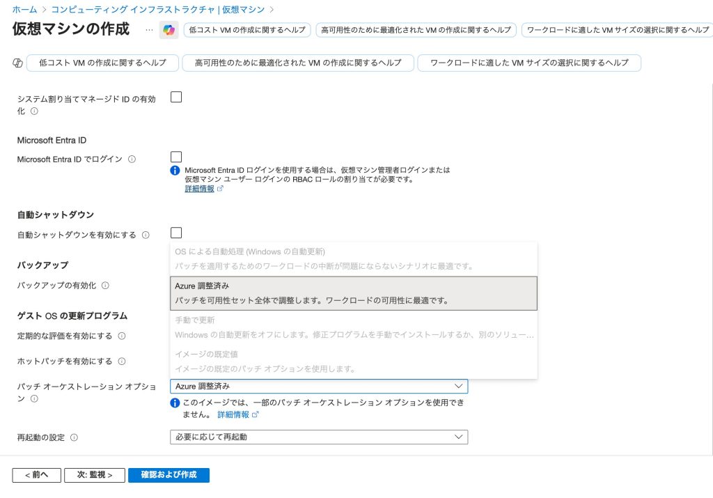 Azure Windows VM 自動更新の設定