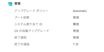 - 左側メニューから「Settings」セクションの「Upgrade policy」を選択