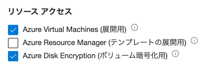 - Key Vault にディスク暗号化用のキーが作成されていること